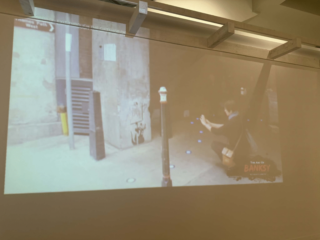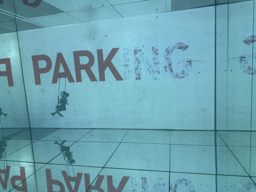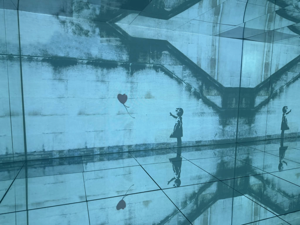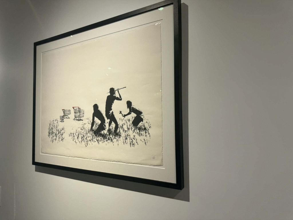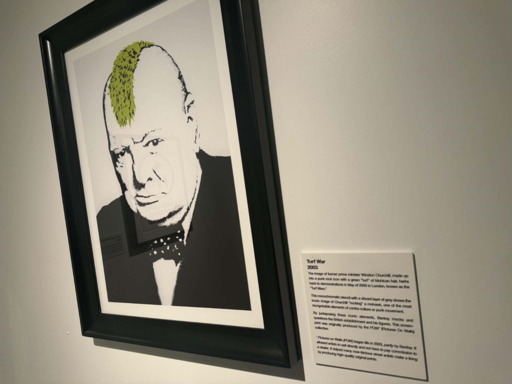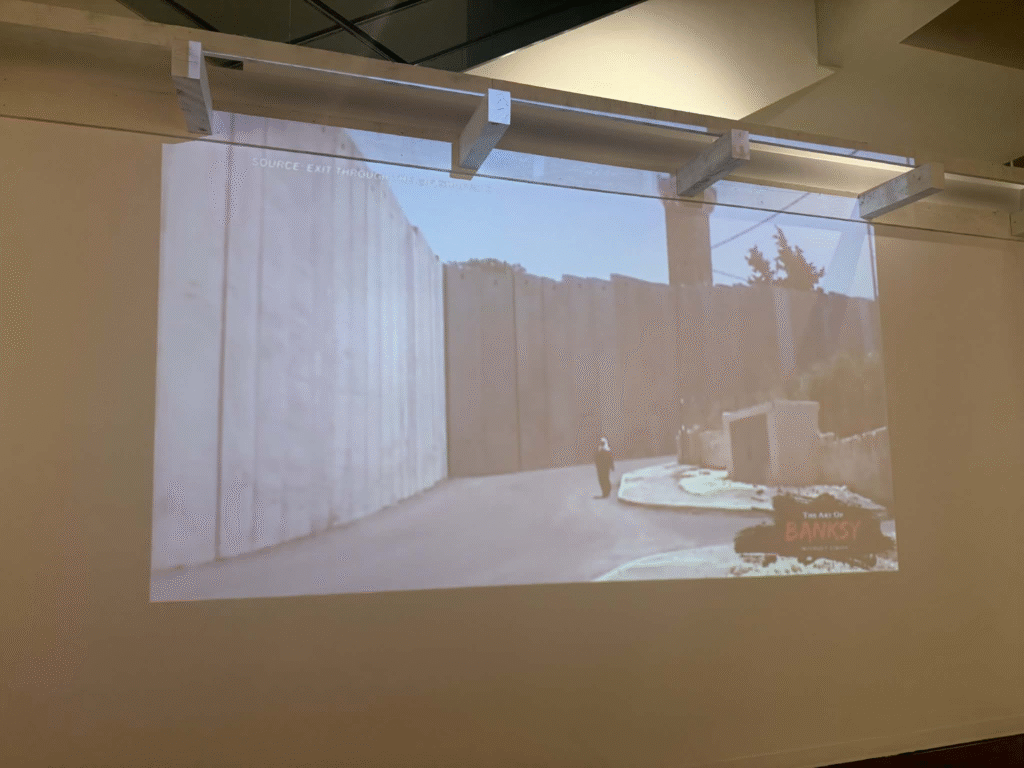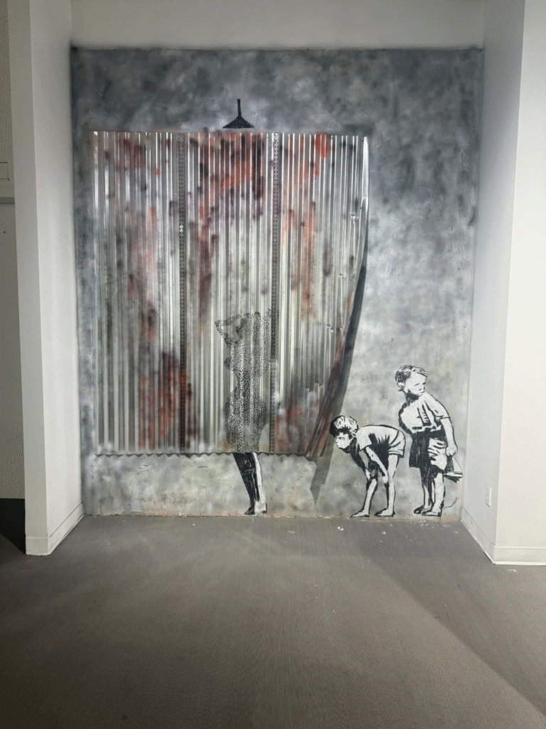 من أبرز ما يلفت الانتباه في المعرض هو وجود زاوية خاصة تركز على فلسطين. لقد خصص المنظمون مساحة لعرض أعمال بانسكي التي تناولت القضية الفلسطينية وموضوعات الاحتلال والعدالة الاجتماعية، وهو جانب مهم من أعماله السياسية . هذه الزاوية أعطت الزوار فرصة للتأمل في البعد الإنساني والسياسي للفنان، وأظهرت كيف يستخدم بانسكي فن الشارع كأداة للفت الانتباه إلى قضايا عالمية ملحة.