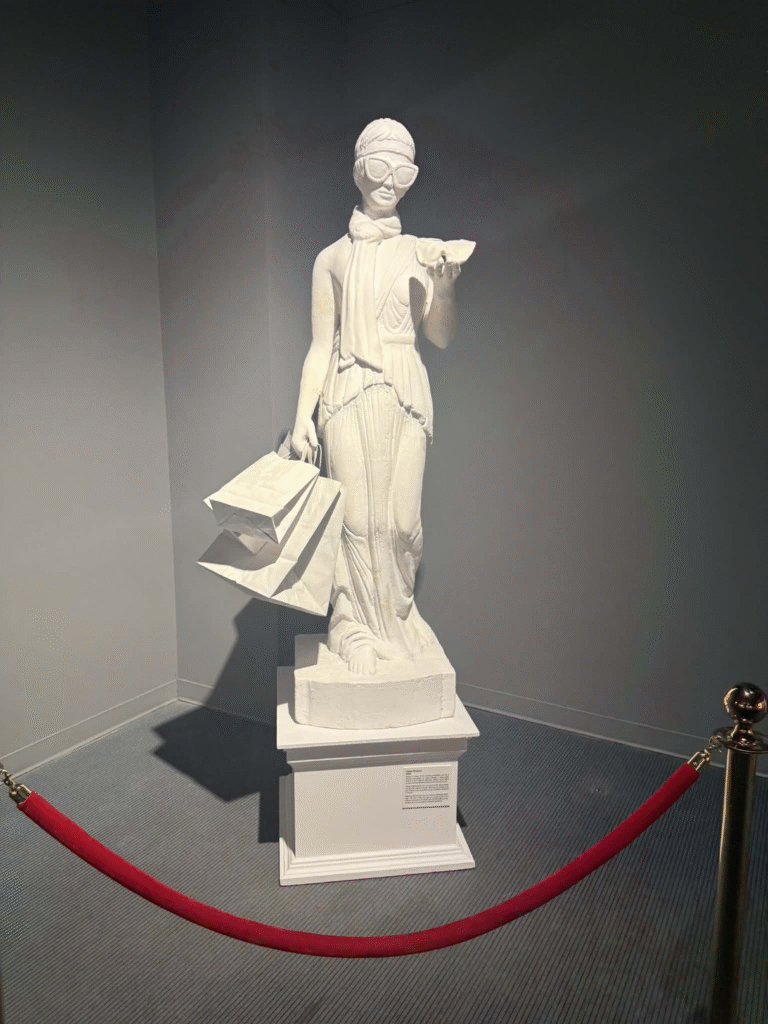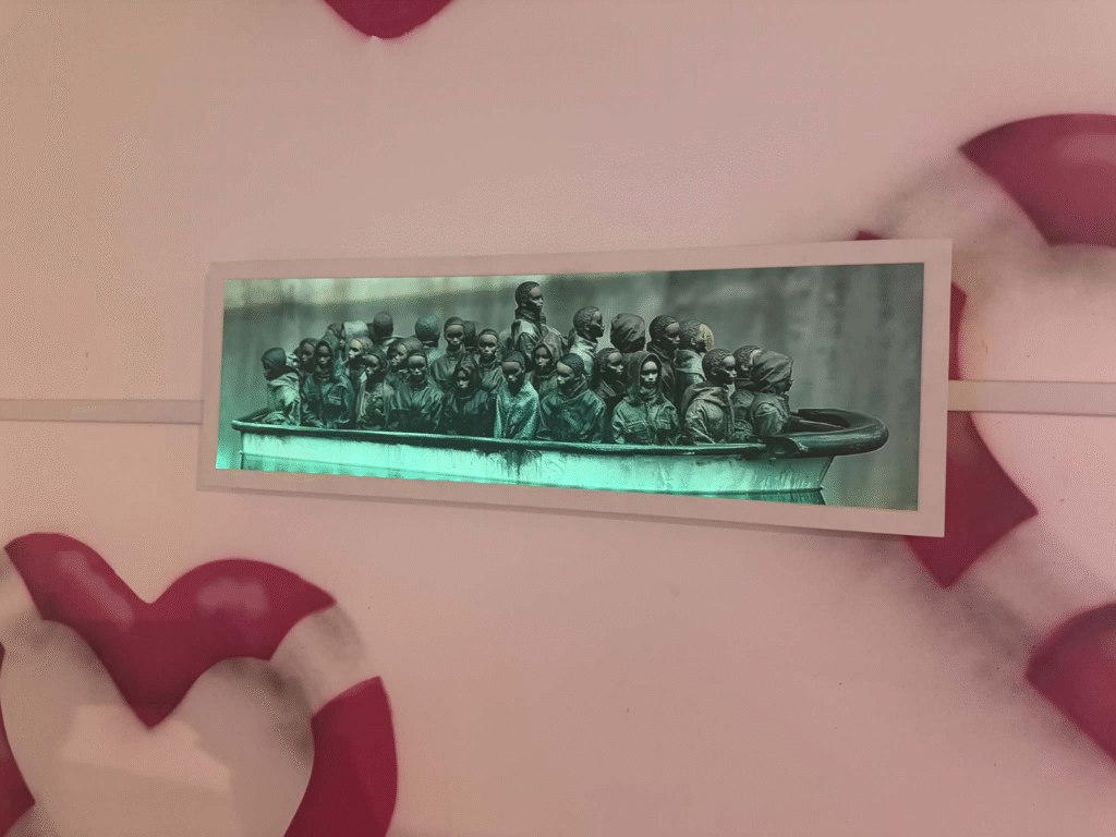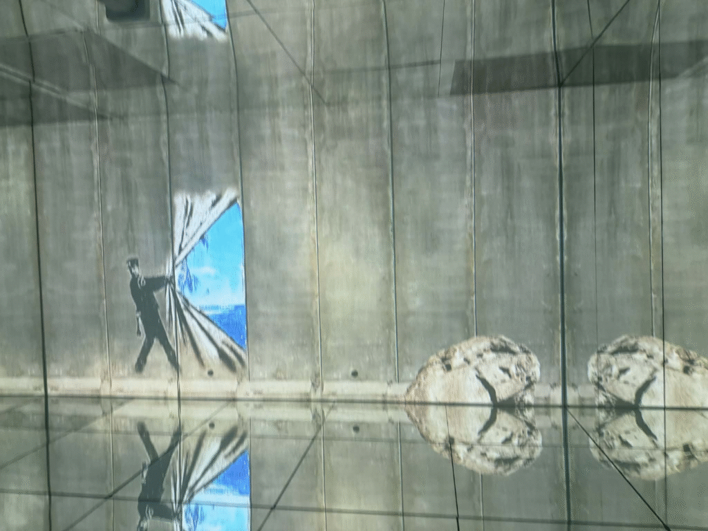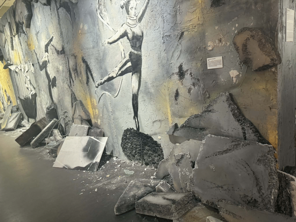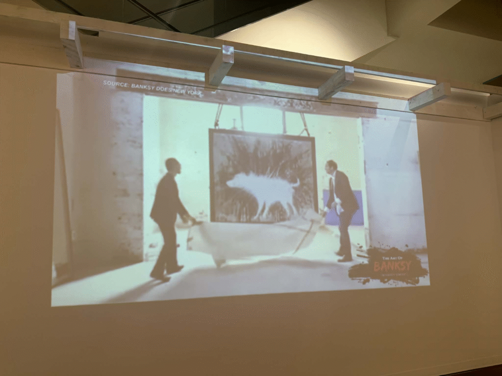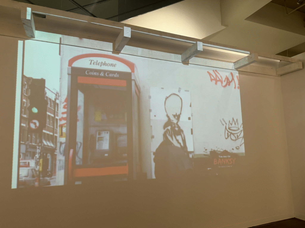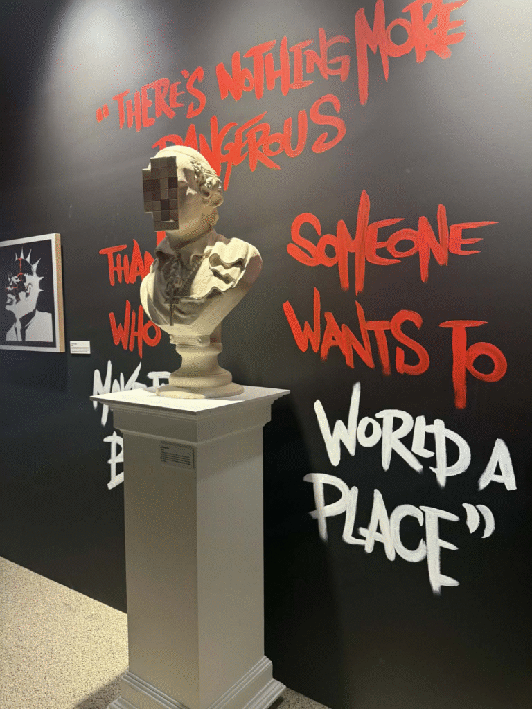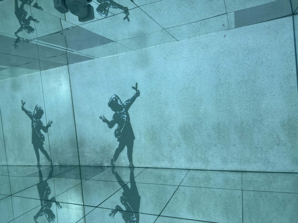 من أبرز ما يلفت الانتباه في المعرض هو وجود زاوية خاصة تركز على فلسطين. لقد خصص المنظمون مساحة لعرض أعمال بانسكي التي تناولت القضية الفلسطينية وموضوعات الاحتلال والعدالة الاجتماعية، وهو جانب مهم من أعماله السياسية . هذه الزاوية أعطت الزوار فرصة للتأمل في البعد الإنساني والسياسي للفنان، وأظهرت كيف يستخدم بانسكي فن الشارع كأداة للفت الانتباه إلى قضايا عالمية ملحة.