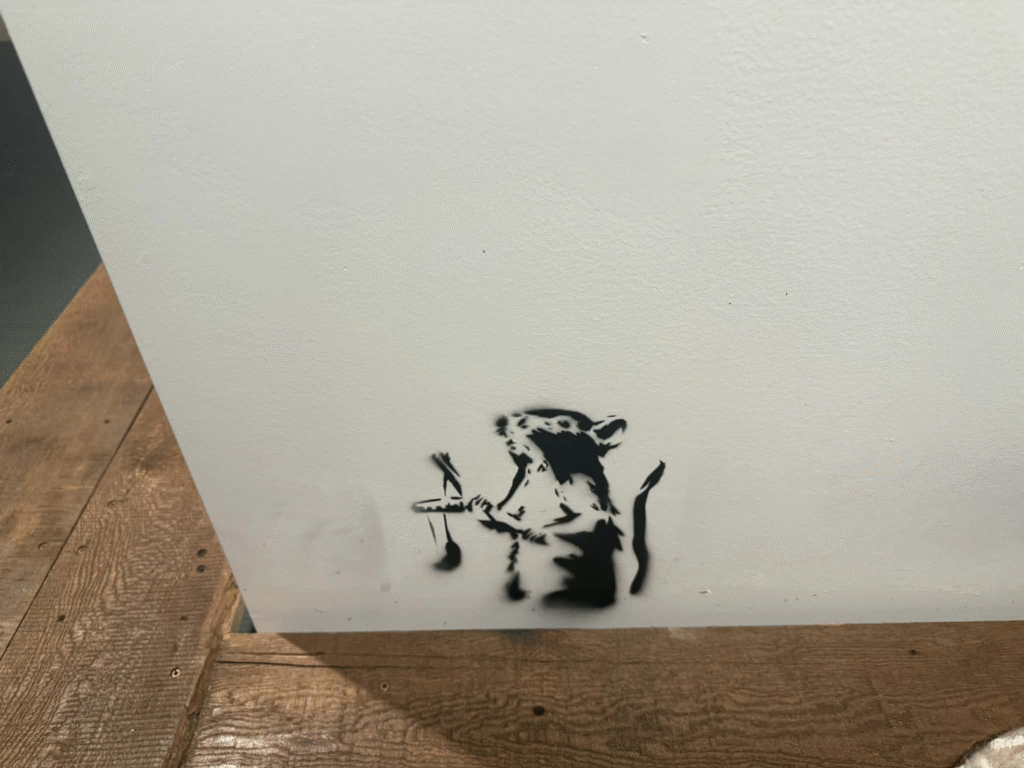 وبانسكي هو اسم مستعار لفنان شارع بريطاني غامض، معروف منذ تسعينيات القرن الماضي، هويته الحقيقية غير مؤكدة وتظل موضوعا للتكهنات. اشتهر باستخدام الستنسل، وهي تقنية تبتكر قالبا أو لوحة شفافة (عادة مصنوعة من الورق أو البلاستيك) عليه التصميم الذي يريد رسمه، ثم يرش أو يدهن الطلاء فوق القالب على الجدار أو السطح.